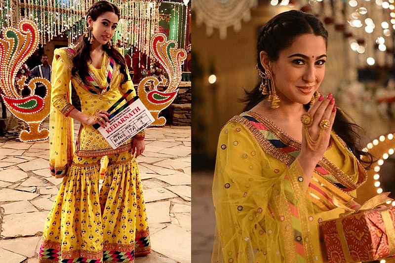 We can't take our eyes off Sara in film Kedarnath's Sweetheart song. She sported a yellow sharara with short kurti and a matching dupatta with multi-colour border. Latkan earrings, half-tied hair and minimal makeup rounded off her look.