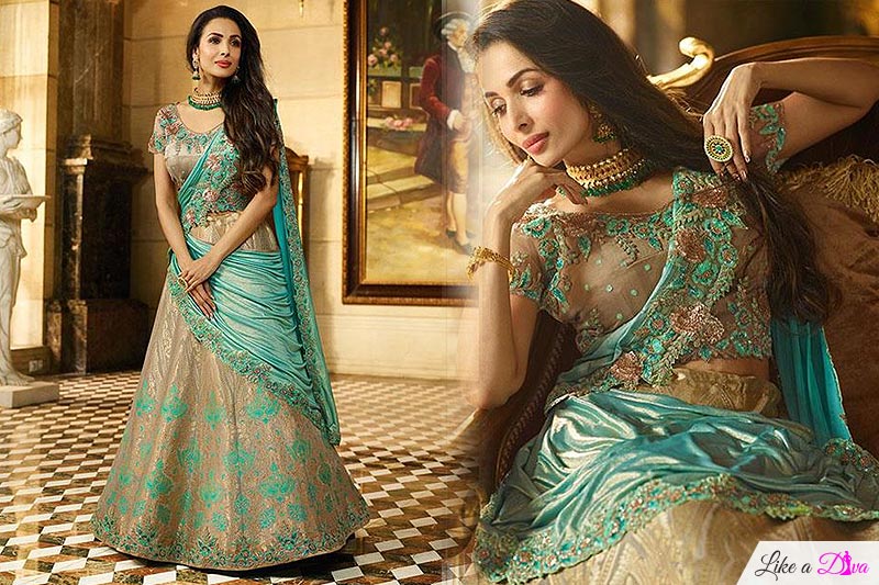 If you are intending to stun a saree look focus on the fabric and the drape. Ensure spreading out the pleats uniformly instead of tucking them all together ner the navel. With respect to fabric its best to pick lightweight variations like chiffon and georgette sarees and avoid fabrics like organza and cotton.