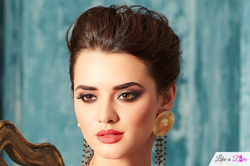 Let your eyes do the talking on this festive occasion. First, use a concealer or eye primer to hide your dark circles. Next, apply eyeliner in the cat eye or winged look. Fish tail and double winged eyeliner styles are also becoming popular, so go for any one of them for a dramatic look. Apply kajal and after that apply eye shadow depending on the colours of your outfit. And finish off your eye makeup with mascara to add volume to your eyes. You can also use false eyelashes.