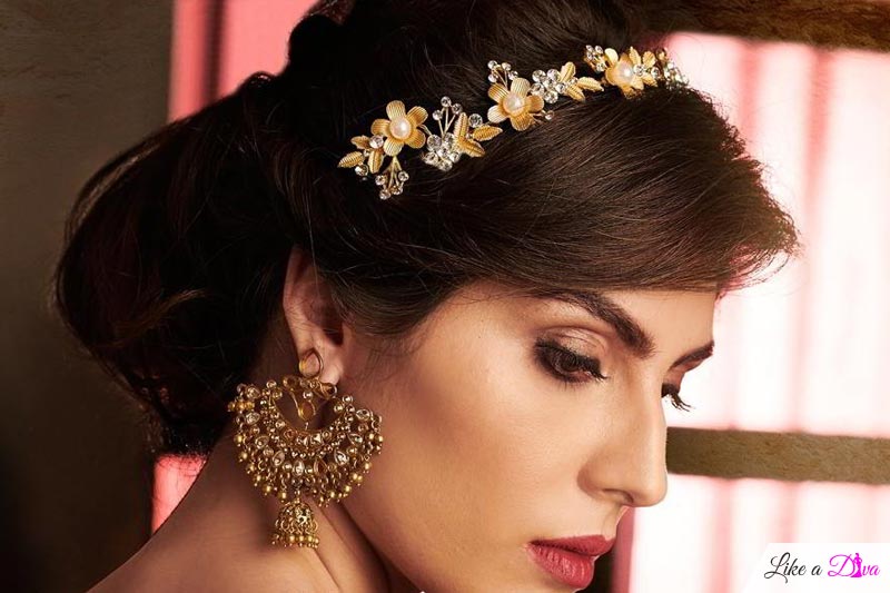 A festive occasion is the perfect time to add some bling to your look. Using a designer hair accessory, you can add more style to your hairstyle. Jewellery completes the traditional look, so team your traditional outfit with chaand balis, neckpiece, rings and bangles and look like a true ethnic diva.