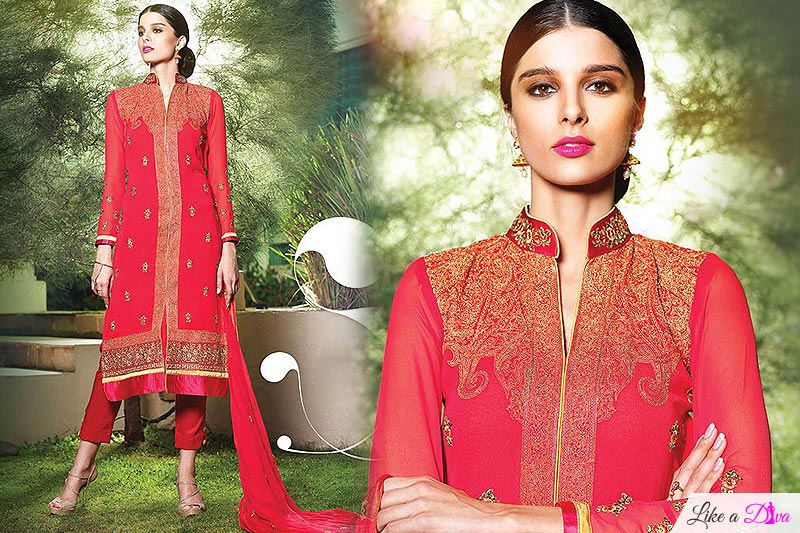 Slits are not restricted to western clothing any longer. This trend has acquired a great position in ethnic fashion. If you wish to try something new and experiment bit go for front slit salwar suits as they are elegant to the core.